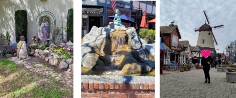 We traveled to Solvang, California, a small town in the Santa Barbara area. My sibling LOVES Tik Tok and saw the town on there and wanted to go for Spring Break (our local colleges take break a week earlier than everyone else to help students avoid crowds so it was a really enjoyable experience for us). Solvang’s tag line is “a little slice of Denmark in Southern California” and it definitely lives up to that! The town has about 3 major streets filled with restaurants, bakeries, and souvenir/gift shops. Not only does it deliver on its Danish promise, I also spotted specialty items from the Netherlands and Sweden. While we were there, there was a mask mandate in place that required face coverings in all areas, including outside.