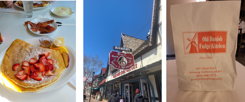 Danish Pancakes with Fruit (Paula’s Pancake House), Olsen’s Danish Village Bakery, Old Danish Fudge Kitchen